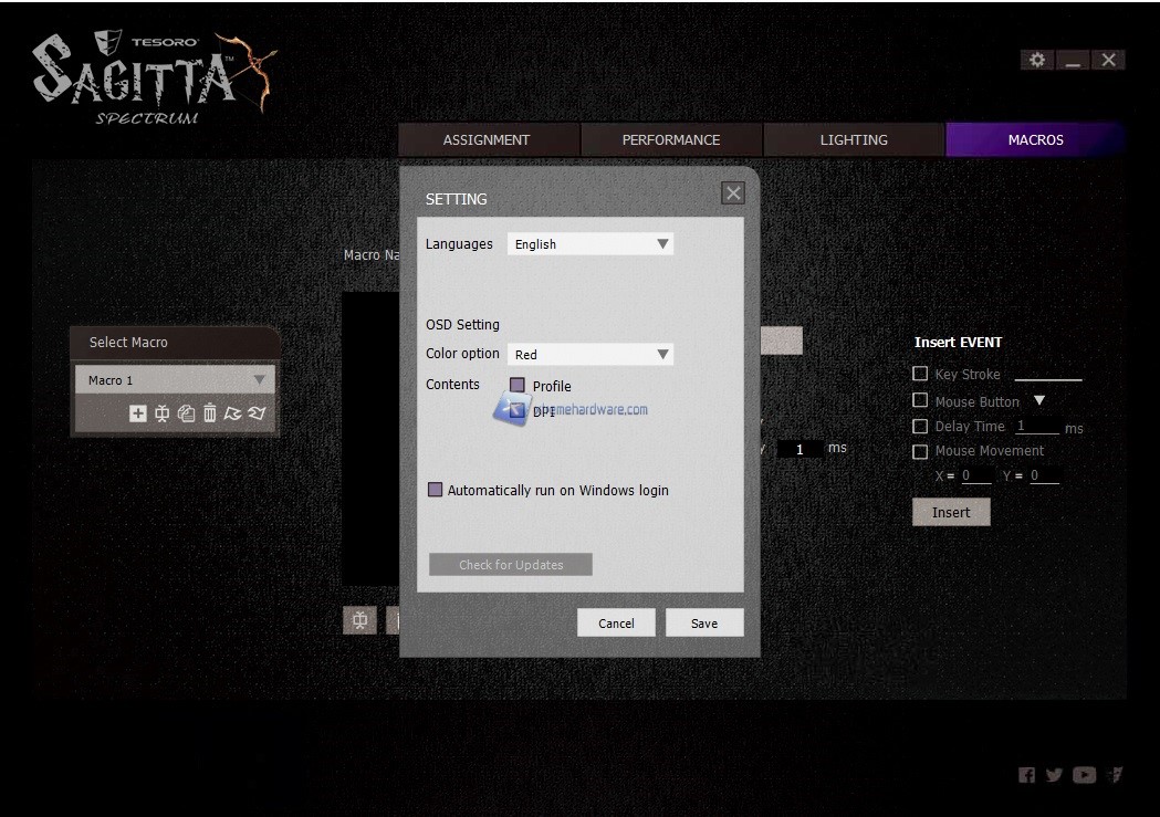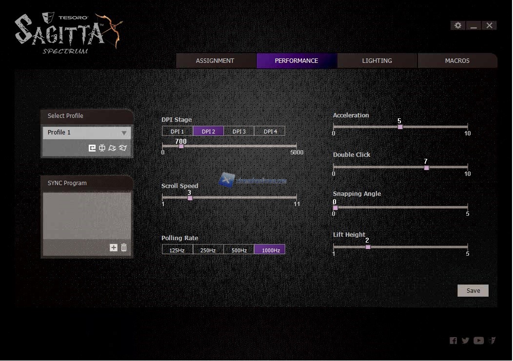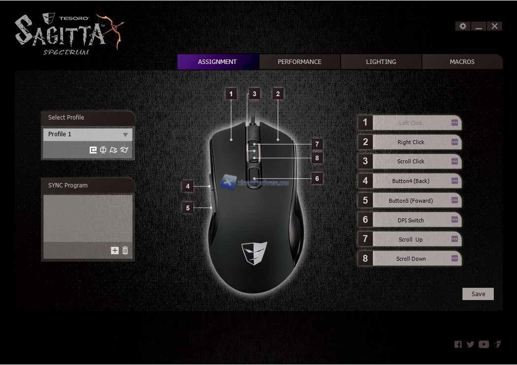 Come sempre anche nel bundle del Tesoro Sagitta Spectrum non viene fornito alcun software di gestione che ci permetterà di agire sui maggiori parametri ed impostazioni del mouse, dunque dovremo provvedere a collegarci al sito di Tesoro e scaricarlo.