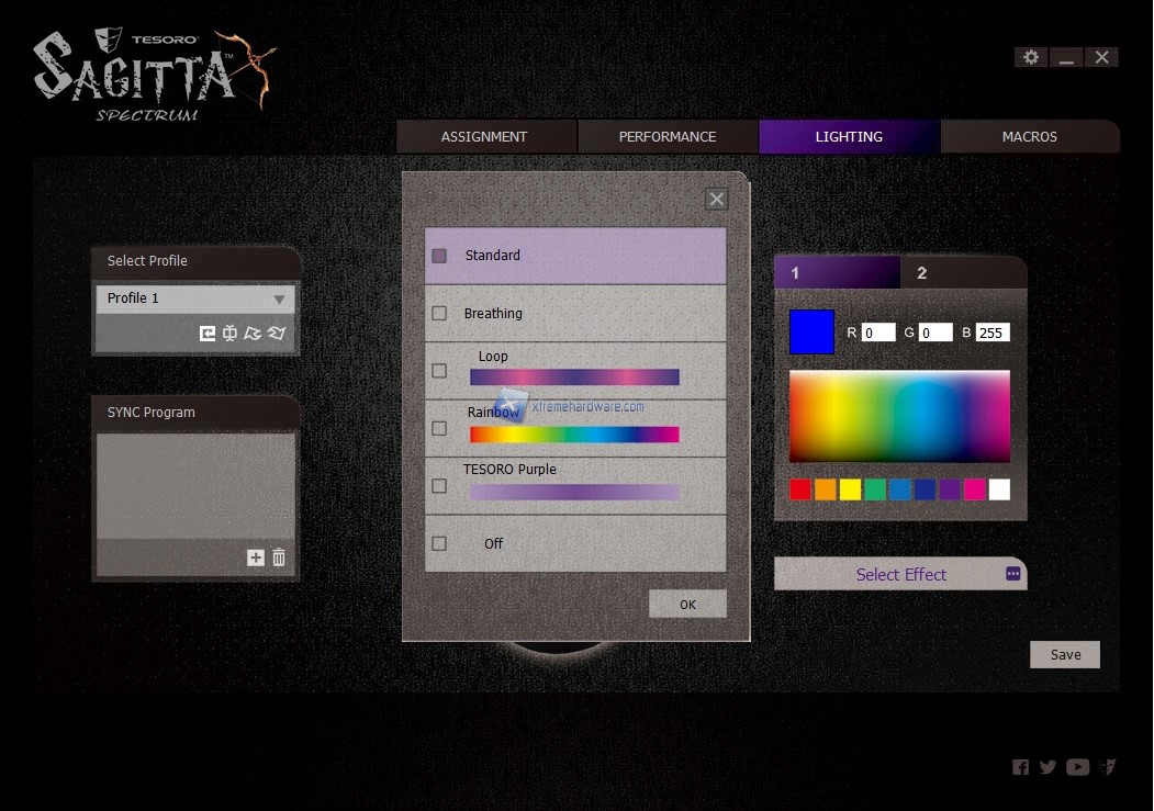 Come possiamo notare il software che Tesoro sta ultimamente fornendo con i suoi prodotti è stato leggermente migliorato e presenta una grafica meno spigolosa. Troviamo per il Tesoro Sagitta Spectrum tutti i i Menù principali a portata di click e potremo dunque iniziare la personalizzazione con estrema immediatezza e facilità.