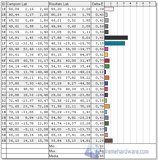 Il profilo colore non va a modificare molto la risposta del monitor che è già piuttosto precisa a default. La copertura gamut, il gamma e la temperatura del bianco rimangono pressoché i medesimi, mentre il valore medio del Delta-E passa da 1,66 a 0,85.