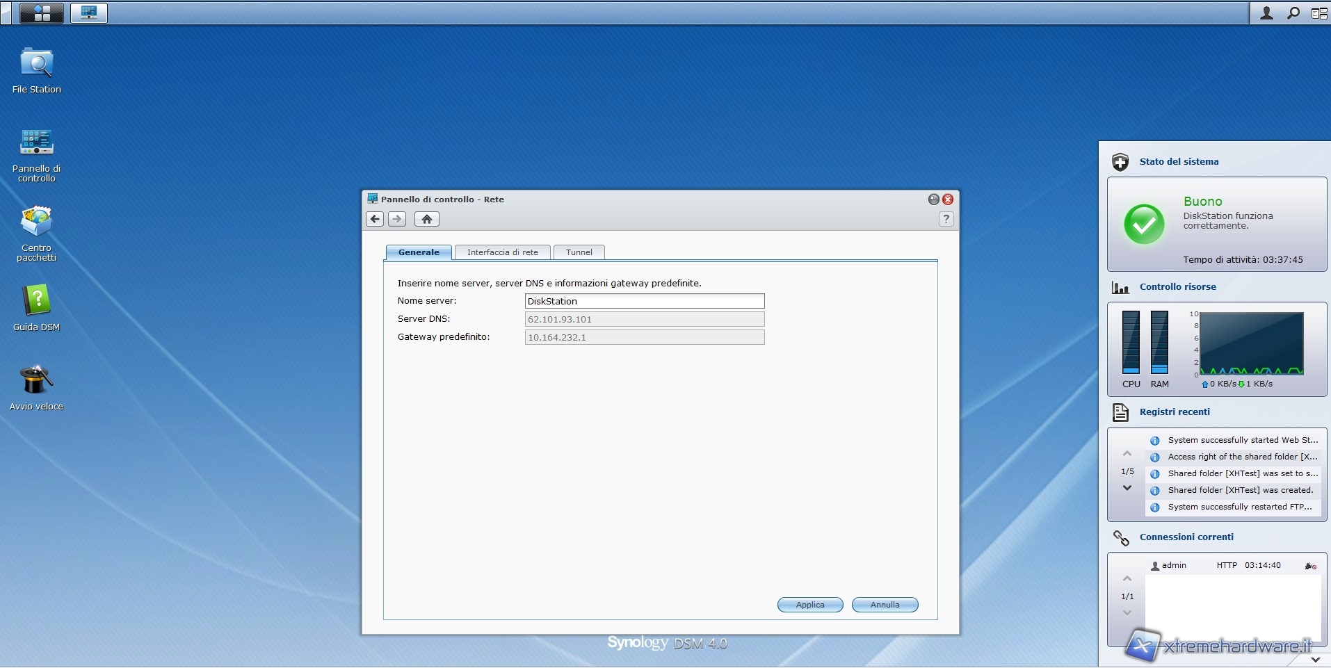 Qui, infatti, è possibile impostare il nome server, gli indirizzi DNS e gateway del Synology DS212j oltre che impostare l’indirizzo IP da assegnare al NAS.