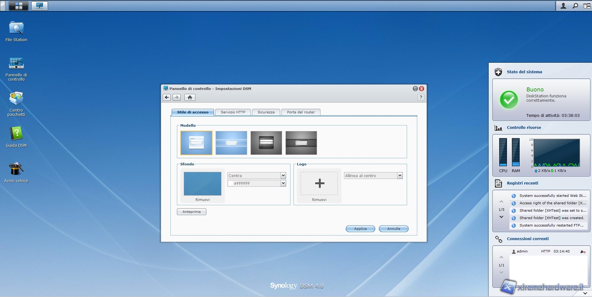 Tramite questo menù possiamo modificare l’aspetto grafico del software di gestione del Synology DS212j ed altre features che lo riguardano.