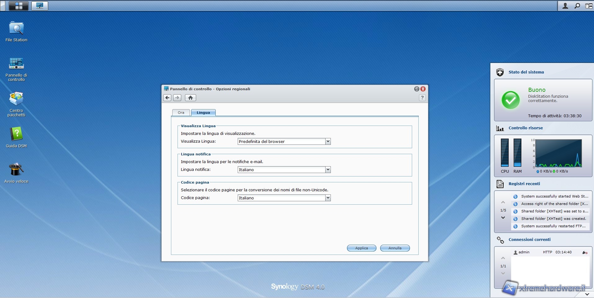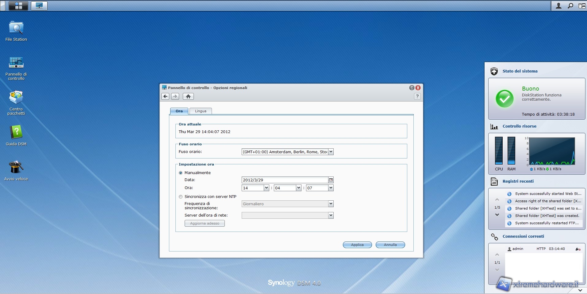 Per impostare data, ora e lingua del Synology DS212j, entrate in questo menù.