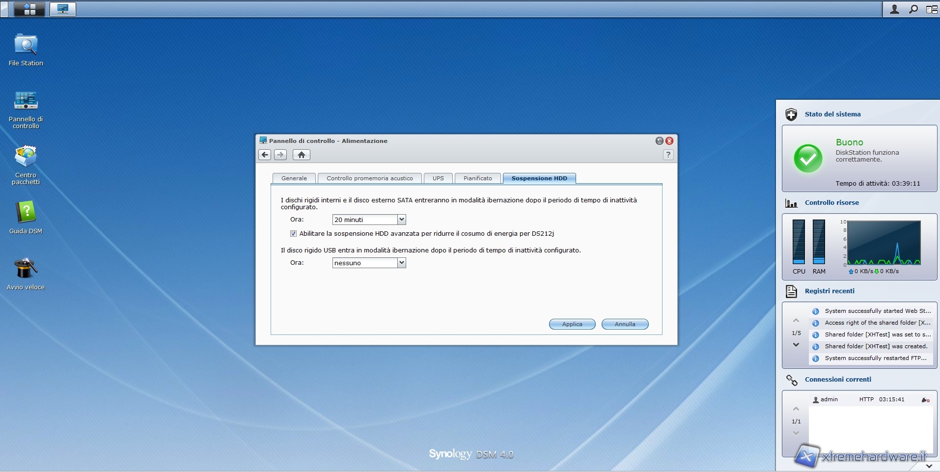 Questo sotto-menù permette la gestione energetica del nostro Synology DS212j.
