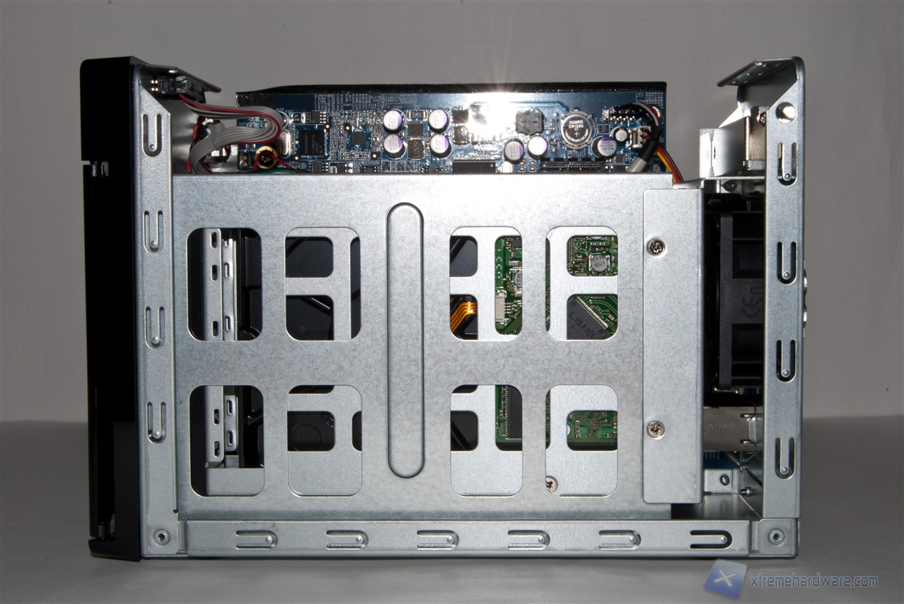 Nell’ultima immagine possiamo scorgere, all’interno dell’alloggiamento dei dischi, i connettori SATA con alle spalle la ventola ad estrazione.
